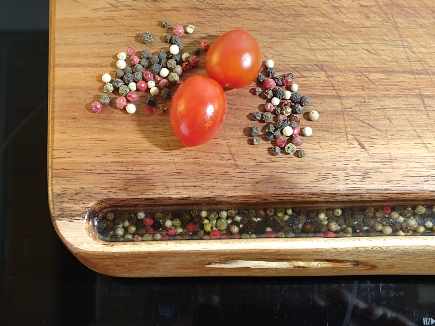 Die gefüllte Saftrille - Pfefferkörner in Epoxidharz - und viel Platz für den Saft