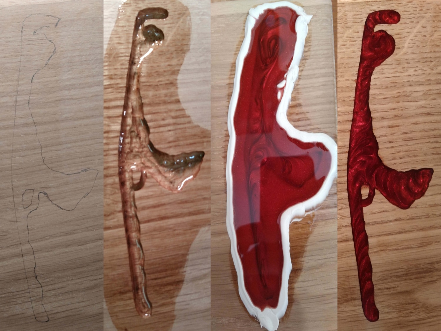 Von Hand fertige ich in etlichen Arbeitsschritten die Silhouette von Sylt in rot, blau oder Gold