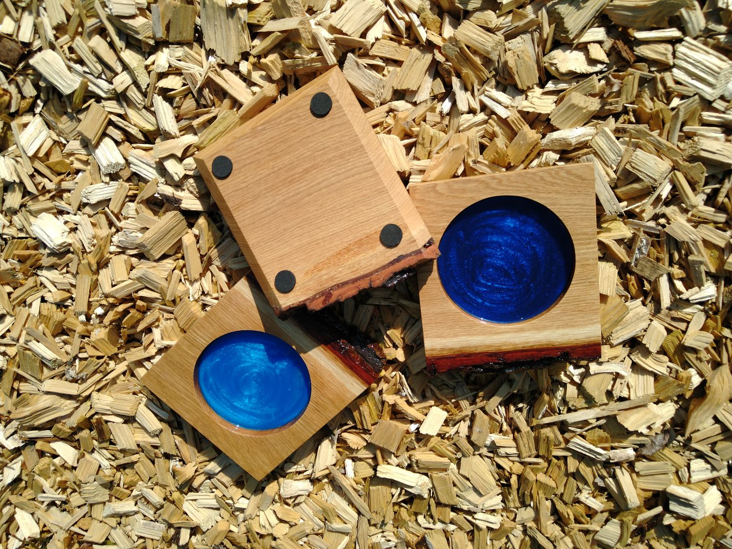 Die Borke ist 2 x mit Epoxidharz versiegelt, kleine Gummifüßchen verleihen Rutschfestigkeit