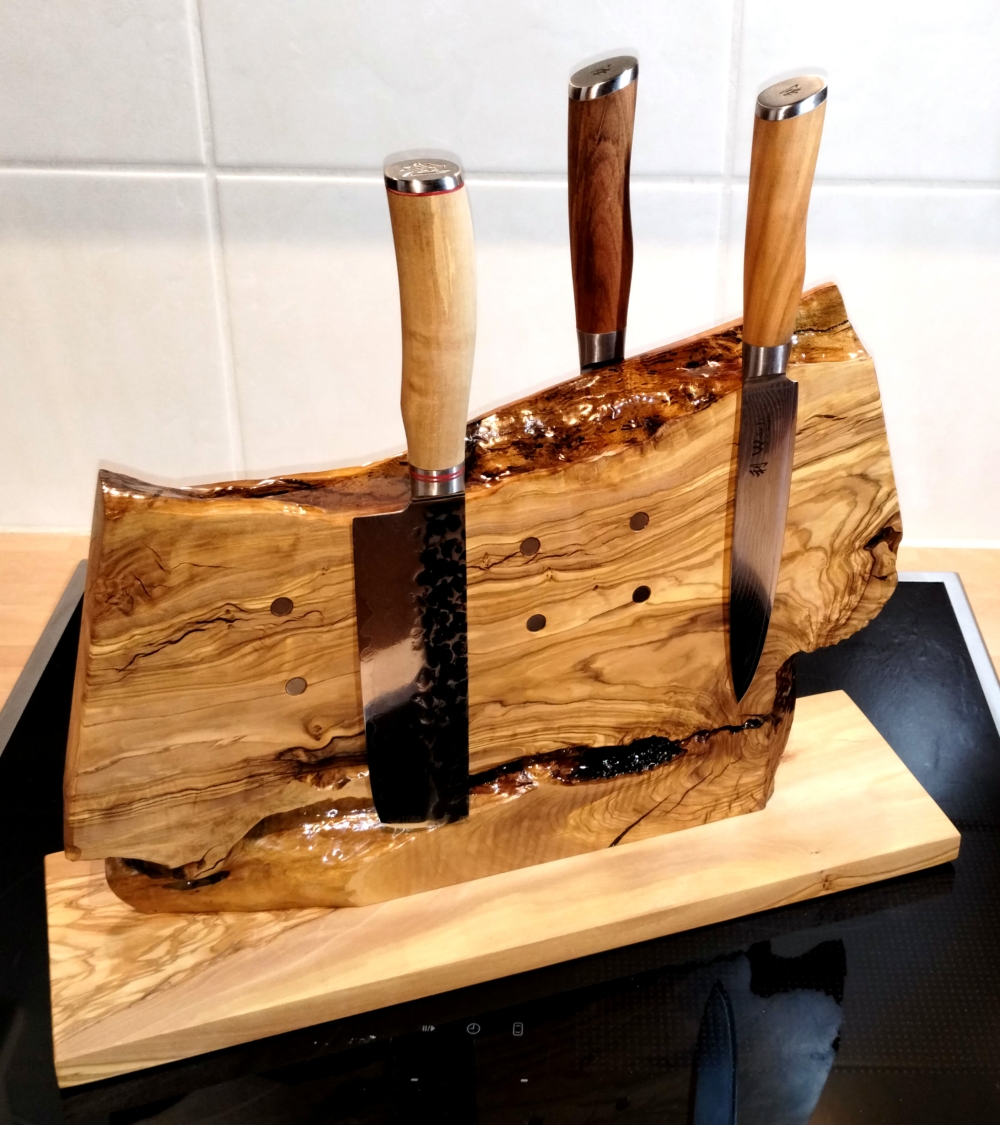 Schneidebretter und Messerbloecke aus Olivenholz - einmalig und einzigartig